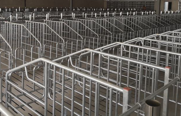 采用母豬限位欄能有效地節(jié)省占地空間,最大限度地把有限建筑面積發(fā)揮到極限,同時更易于對妊娠母豬的管理。熱鍍鋅鋼管焊接,堅固耐用,耐腐蝕,好清洗。定位欄采用熱鍍鋅管厚度2.2,管粗25,可以定做國標2.5熱鍍鋅的,11片為一組,可供10頭母豬。母豬產(chǎn)前7天放到定位欄中保胎。
